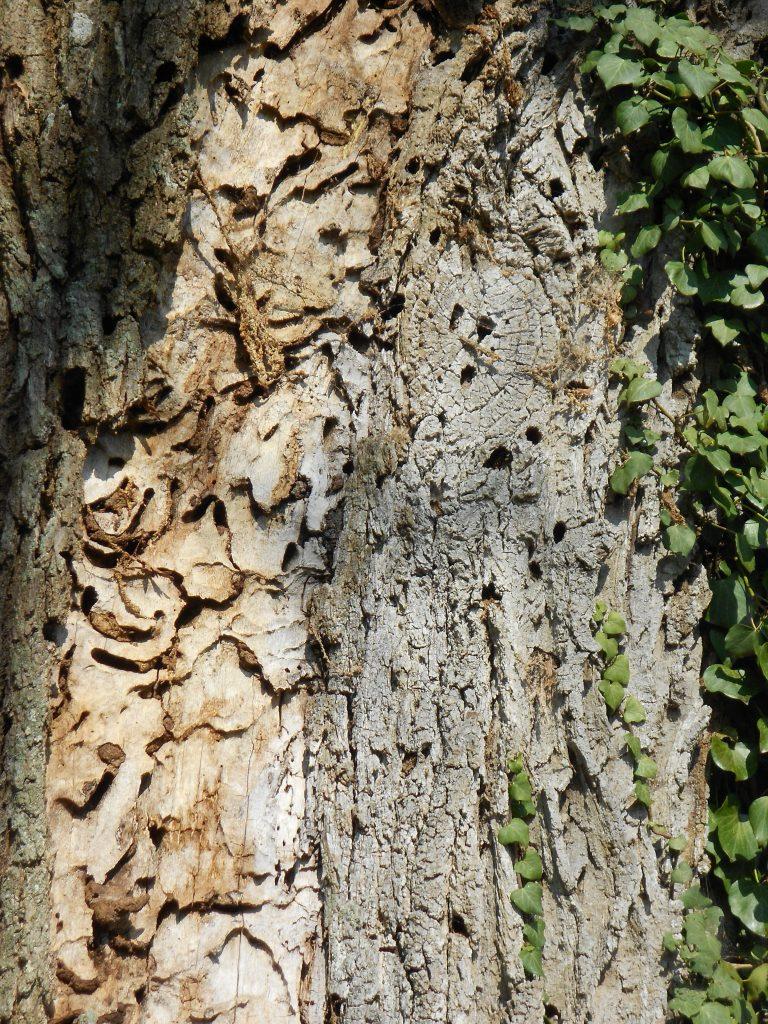 Il semble que l'arbre en question soit infecté par un champignon de la famille des Polyporales, connu sous le nom de Meruliaceae, qui provoque la pourriture blanche au cœur du tronc de l'arbre et peut même attaquer les racines. C'est une situation grave qui peut nécessiter une action rapide pour traiter ou retirer l'arbre infecté.